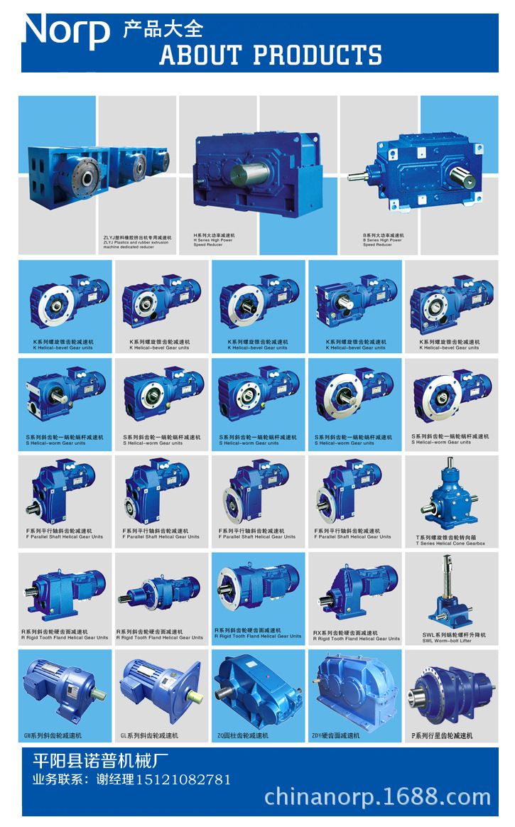 平陽縣諾普機械廠成立于2008年,是一家專注于減速機械及相關配套設備開發(fā)、制造、銷售的專業(yè)性傳動設備制造商,專業(yè)生產R系列斜齒輪硬齒面減速機,S系列斜齒輪蝸輪蝸桿減速機,F(xiàn)系列平行軸斜齒輪減速機,K系列斜齒輪螺旋錐齒輪減速機,T系列螺旋錐齒輪轉向箱,H、B系列大功率工業(yè)齒輪箱,SWL蝸輪絲桿升降機,ZLYJ系列擠出機專用硬齒面齒輪箱,G系列全封閉式精密齒輪減速電機,P系列行星齒輪減速機等十余個系列、上百種型號、數(shù)千個規(guī)格的產品,是目前國際上工業(yè)動力傳輸領域最普遍采用的減速驅動裝置的專業(yè)生產廠家。