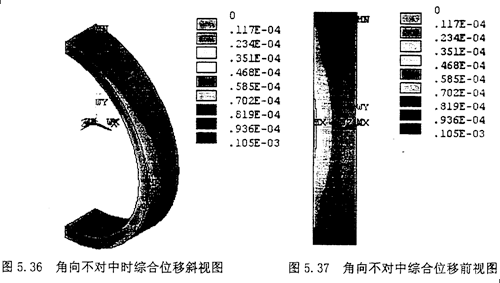 角向不對中的模擬過程基本上類似軸向不對中,不同的是這時的位移變成了即有y軸方向的位移,又有z軸方向的位移。其位移圖如圖5.34所示。