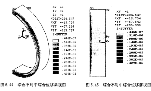 綜合不對中的模擬過程基本上類似軸向不對中,不同的是這時的位移變成了既有軸向的位移,還有徑向位移以及角向位移。其位移圖如圖5.42所示。