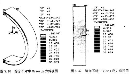 2.顯示節(jié)點的Von Mises應力云圖:選擇Main Menu>General Postproc>Plot Result>NodalSolu,在彈出的對話框內選擇“Stress”,第二欄內選擇“Von Mises Stress”,則其顯示的云圖如圖5.46,5.47所示