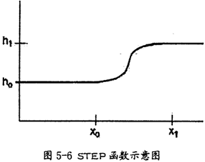 在ADAMS中,STEP函數(shù)近似一個(gè)標(biāo)準(zhǔn)的數(shù)學(xué)STEP函數(shù)(沒(méi)有不連續(xù)性),并逐步逼近數(shù)值,例如:驅(qū)動(dòng)或者力,向上或者向下或者打開和關(guān)閉。它的函數(shù)圖形如圖5-6所示。格式同各參數(shù)說(shuō)明如下: