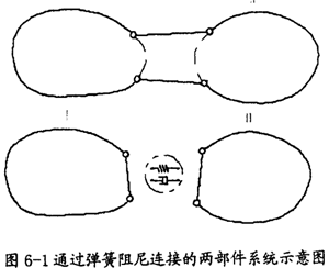 設(shè)有部件I和部件Ⅱ,通過彈簧和阻尼構(gòu)件相連接,如圖6-1所示。對(duì)于部件I,應(yīng)用