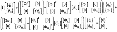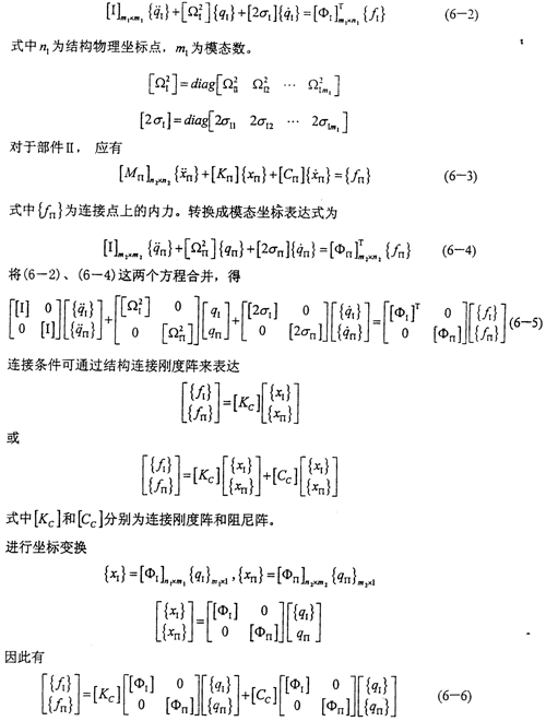 求組合系統(tǒng)的特征值及特征向量,然后可建立組合系統(tǒng)的模態(tài)模型。(不難看出,此處組合結(jié)構(gòu)整體的特征值的數(shù)目由各部件的模態(tài)數(shù)來確定,而不是由它們的結(jié)構(gòu)幾何坐標(biāo)數(shù)確定的)