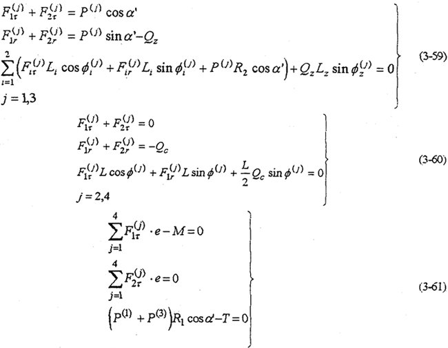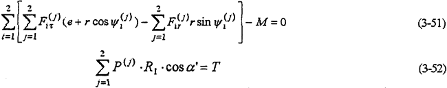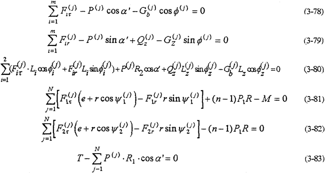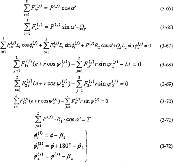 ——共可得到4個(gè)方程。由式(3-59)-(3-63)就構(gòu)成多相并列雙曲柄機(jī)構(gòu)輸入式二齒環(huán)內(nèi)齒行星傳動(dòng)機(jī)構(gòu)的動(dòng)力分析數(shù)學(xué)模型。