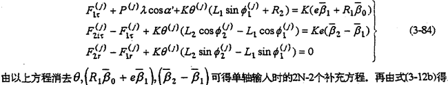 式(3-86)、(3-87)就是考慮間隙誤差的動(dòng)力分析補(bǔ)充方程。