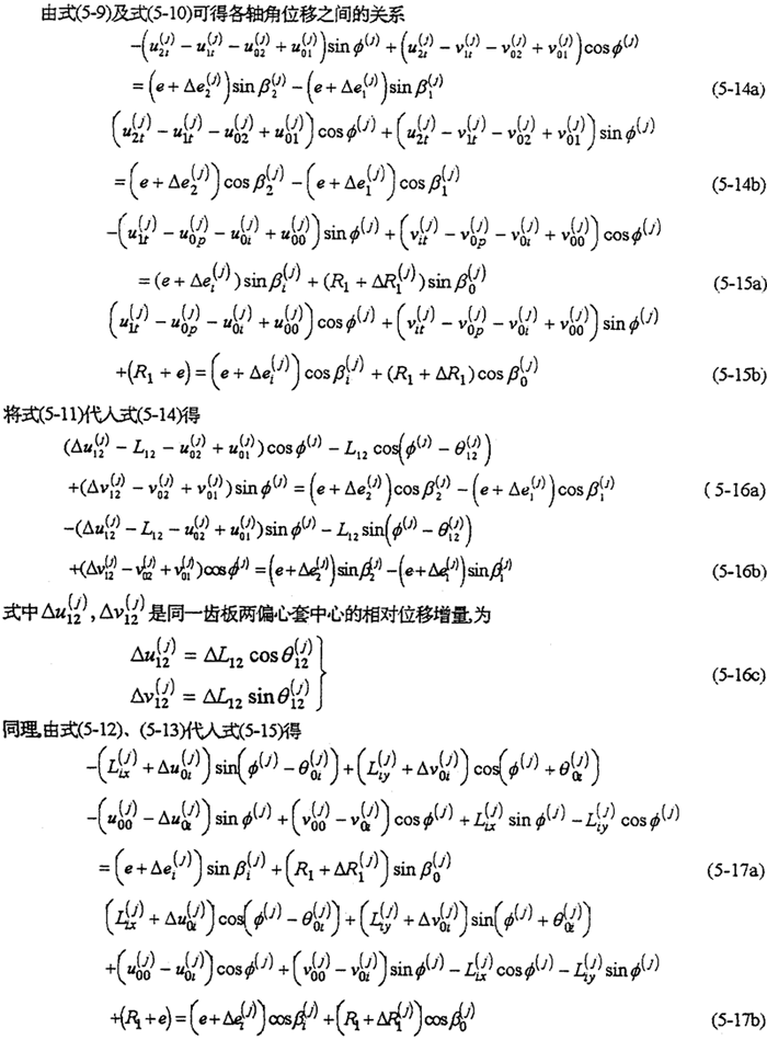 式(5-18)中的△u(j)12,△u(j)12為機(jī)構(gòu)變形后兩偏心套中心之間的長度L12產(chǎn)生的增量分量,它包括齒板兩高速軸孔之間的相對變