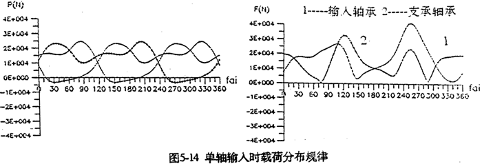 箱體軸承載荷的分布曲線如圖5-10、5-11、5-12的所示。