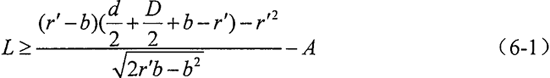 由于球狀銑刀的刀刃部分為半球頭形狀,為避免球頭銑刀的刀柄與殼體內(nèi)壁發(fā)生干涉,導致內(nèi)空間正弦滾道被銑削出平面,則空間正弦曲線的平衡位置到殼體端面的距離L應滿足一定的條件,由圖6-2中各參數(shù)的關系,可以得到