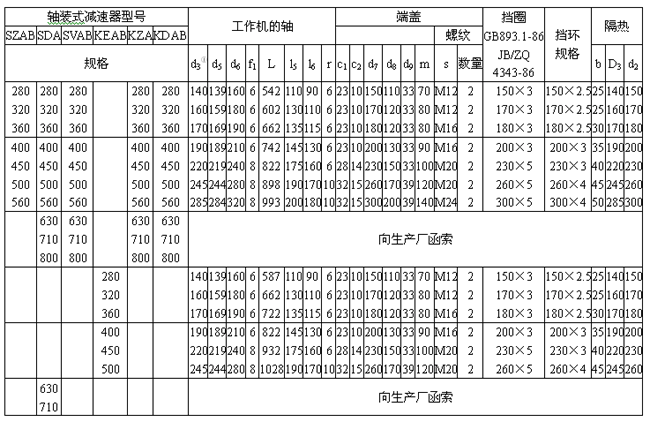 KDNB、KDAB型減速器公稱功率和熱功率